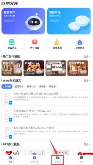 1. 开启匠心文库后,于首页导航栏选取“素材库”功能,从而进入资源库页面。