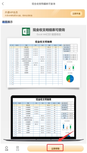 3、点击素材进行预览,确认无误后,选择“获取”选项,就能得到完整且可编辑的表格文件。