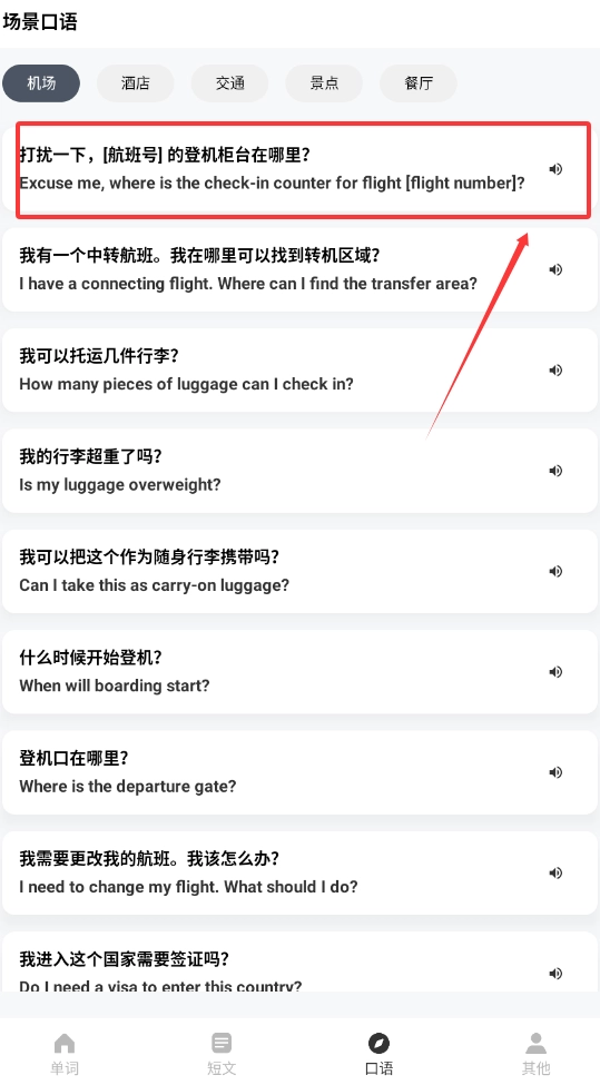 1. 情景对话模块再现真实生活场景,涵盖机场值机、酒店入住、餐厅点餐等数十种实用情境,借助角色扮演提升实际交流能力。