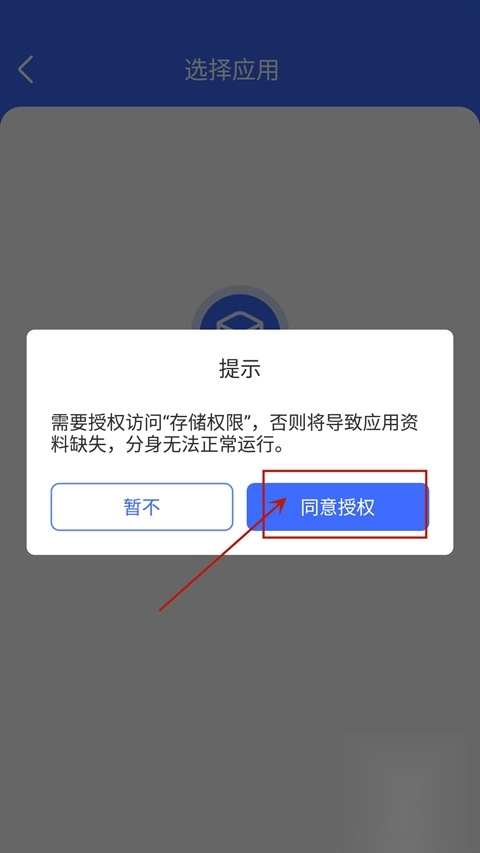 4、这时,系统会申请获取您的“存储权限”,请点击“同意授权”来推进后续操作。
