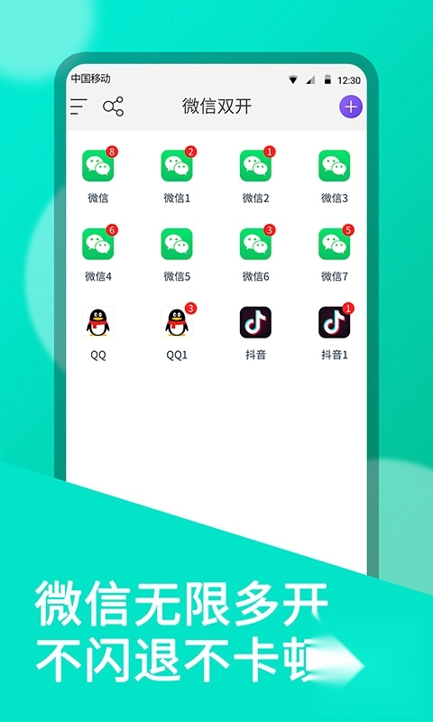 - 支持微信、QQ、淘宝、抖音、王者等多种应用双开,各应用独立运行,使用体验和原版完全相同。