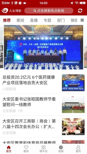 1. 开启大安观察后,于首页显眼之处寻得红色的“要闻”栏目入口,点击该入口就能进入重要新闻聚合页面。