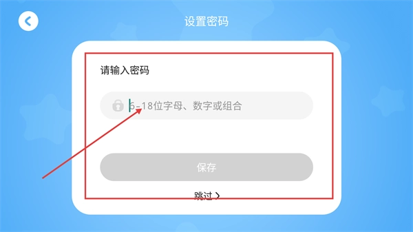 登录后进入【设置密码】页面,可设置6-18位的密码,也可选择【跳过】暂不设置,后续可在个人中心补充。