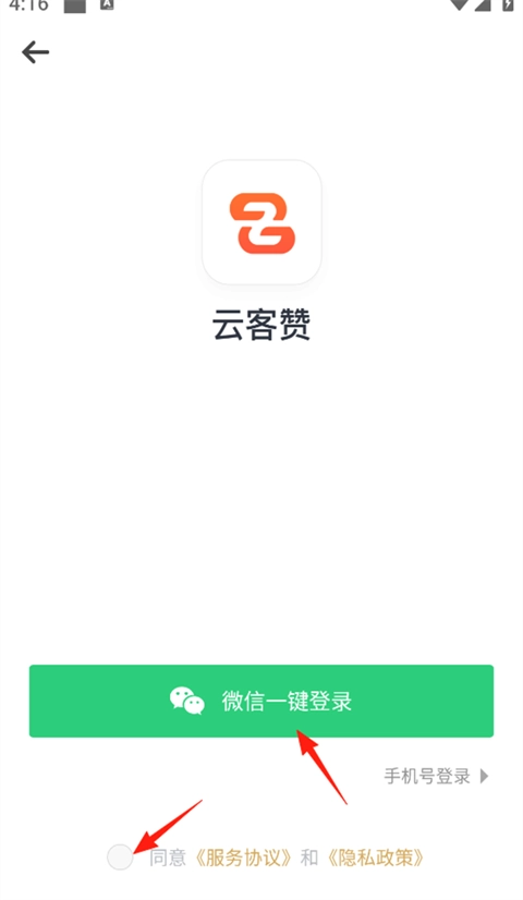 云客赞支持微信/手机号快捷登录