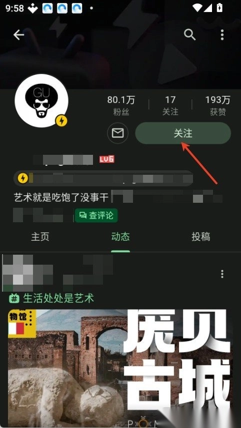 在个人主页里,点击“关注”按钮,就能关注这位up主。