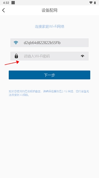 3、等待片刻后,会出现一个网络。输入WIFI密码,连接成功即可。需注意,要确保连接的是2.4G网络,因为该设备暂不支持连接5G频段。