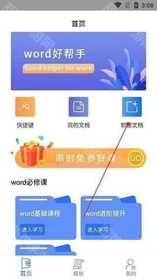 1、在首页能够了解到Word的基本信息和实用小技巧,完成学习后,即可选择创建新的文档。