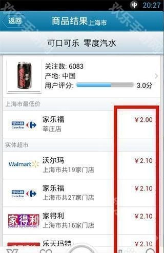 4、进入详情页面后,你就能看到周边大型超市里该商品的价格了。
