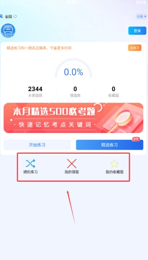 1. 理论题库模块涵盖科目一与科目四的所有考点,练习方式灵活多样,既能够按章节、题型进行练习,也可以选择随机模式,同时还具备收藏重点题目的功能。
