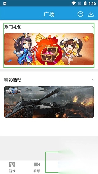 1、如果想领取游戏的礼包,可以点击软件首页下方的广场,可以看到第一栏的游戏礼包选项;
