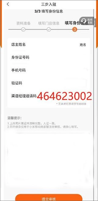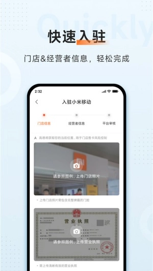 2、提交资料包括营业执照、门店照片、法人手持身份证照片在内。