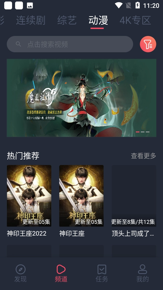 1、视频资源库非常的齐全,热门电影、综艺和动漫等应有尽有