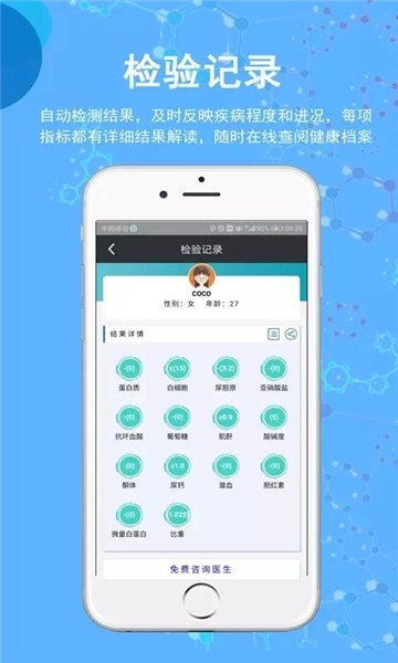 2、配备健康咨询服务,可在线为用户解答检测项目各项指标相关的疑问;
