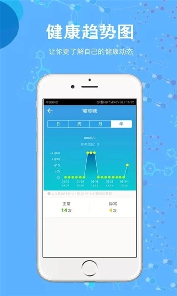 检测中心支持随时用智能手机扫描,完成尿液14项、阴道炎六联检、便潜血、小儿腹泻等项目的检测,检验记录会自动留存,还能开展趋势分析,以便随时掌握健康状况。