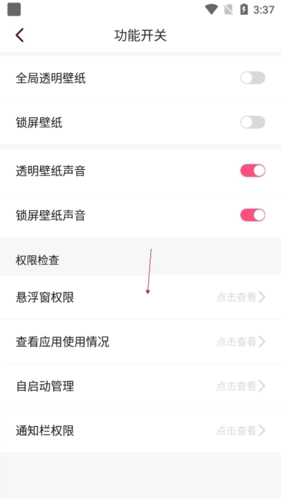 3.点击其中的悬浮窗权限功能。