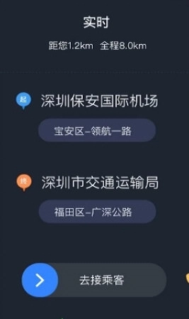 1、进入应用的实时订单页面后,能够查看已指派订单的详细信息,并前往接乘客。