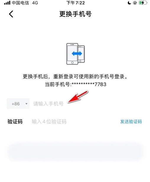 完成身份验证,即输入原手机号收到的短信验证码,之后点击“确定更换手机号”选项。