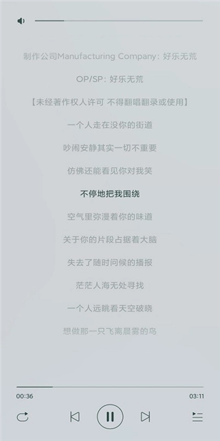 3、提供精美的歌词显示,用户可以边听歌边唱,享受更好的音乐体验,自由查看各种音乐的含义和故事;
