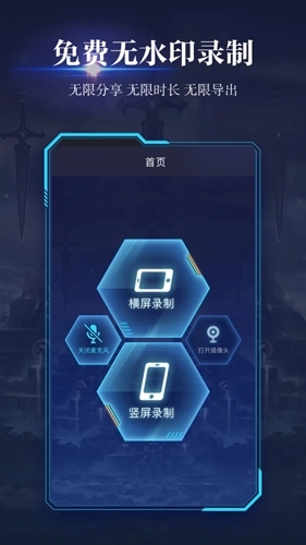 【主播】:可开启前置摄像头原声录制视频,进行主播模式同时显示解说画面;