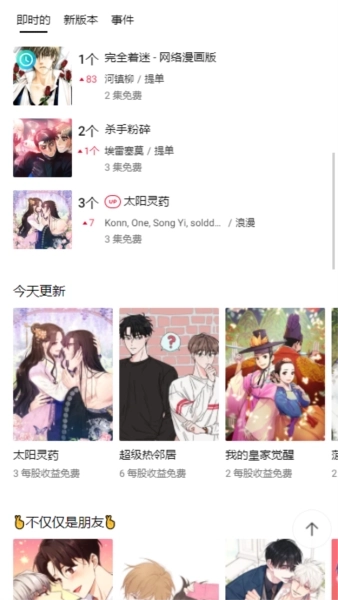 3、这里有非常丰富的漫画种类可供选择,更新速度很快,新章节的内容也会提前在这里进行预热和通知。