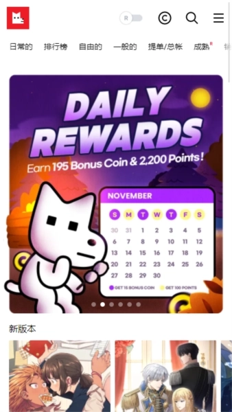 2、lezhin有韩文、英文和日文三种界面,不懂韩文的小伙伴,可以先在英文界面注册账户,注册完成后点击网页右下角切换成韩文界面,登录账户就能看到如下图示啦。