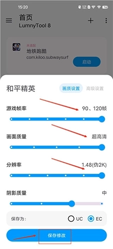 1、LumnyTool性能拉满:支持2K分辨率、4倍抗锯齿、远视距显示与最高画质设置,专为旗舰级SoC设备打造