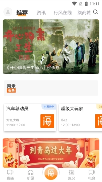 1、第一步是打开海米FM的手机应用,接着在首页里挑选自己感兴趣的电台节目。