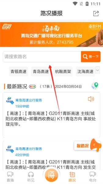 高速路况信息涵盖全省所有高速公路及3万公里普通干线公路,主要包含实时路况、出入口状态、高速事故、养护施工等内容。