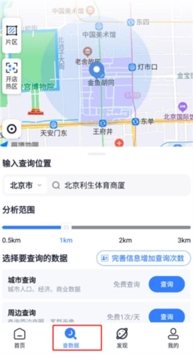 2、点击“查数据”选项,用户能够查询城市、周边、人口、外卖、行业等各类数据。