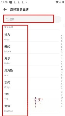 4、在常见品牌中找到需要匹配的品牌,或者在搜索栏直接输入品牌名称查找。