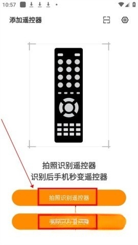 2、选择“拍照识别遥控器”,点击进入授权相机权限后进行扫描匹配即可。