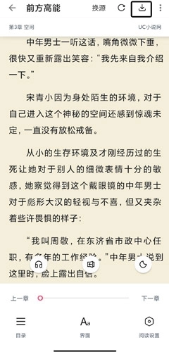 2、进入小说内容中,点击屏幕,点击右上角的按钮;