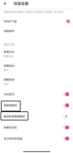 2、在阅读设置页面中可以设置音量键翻页、朗读时音量键翻页。