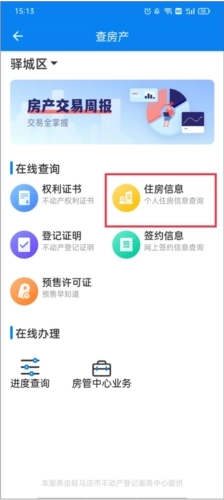 2、你能够在线查询权利证书、住房信息、登记证明等材料,还可以在线办理相关业务,具体操作请点击“住房信息”选项。