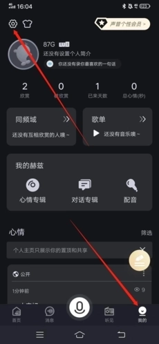 1、进入后,先点击右下角的“我的”,接着点击左上角的“齿轮”按钮。
