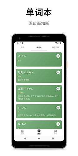 3.简洁素雅的五十音界面设计,搭配齐全的功能,能帮助初学者更牢固地记忆知识点,是一款十分值得尝试的工具。