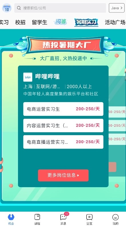 4、暑期实习是该软件的一大特色板块,也是进入大厂的优质机会,一定要把握好。
