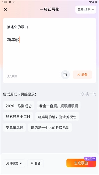 1、支持通过文字描述,图片或者视频等多种不同的输入方式来创作出完整的专属音乐作品;