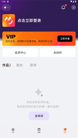 5、最后在我的页面中可以查看自己所创作的作品,喜欢的歌曲以及自己所创建的歌单。