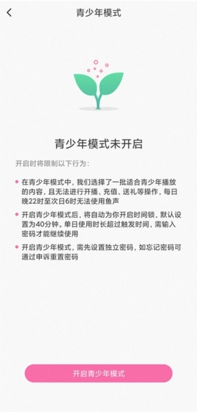 1、打开鱼声音乐的设置页面,接着点击【青少年模式】选项。