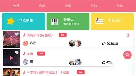 2、在歌曲列表中选择您想要练习的歌曲。