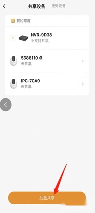 选择对应的通道可实现共享或批量共享(仅能选择通道,主机不支持选择)