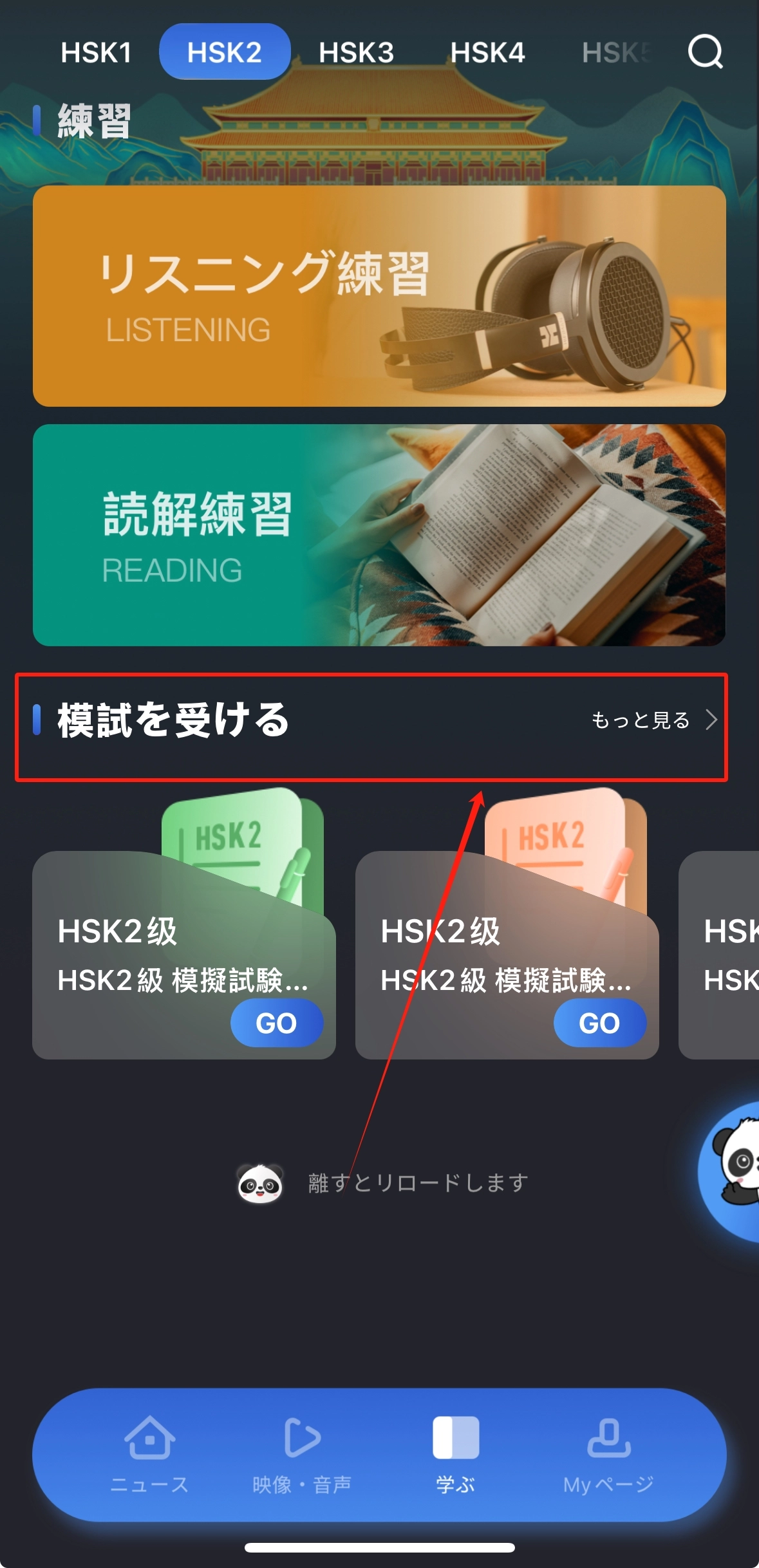 2. 在学习页面,同样能够开展HSK2级的模拟考试练习。