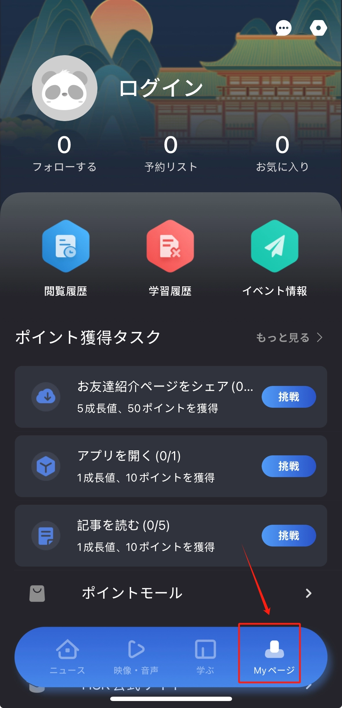 3、第四个模块为“我的主页”,在此模块中可通过积分获取任务。
