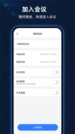 完成注册流程后,您就能用自己的手机号码与设置的密码登录飞语会议了。