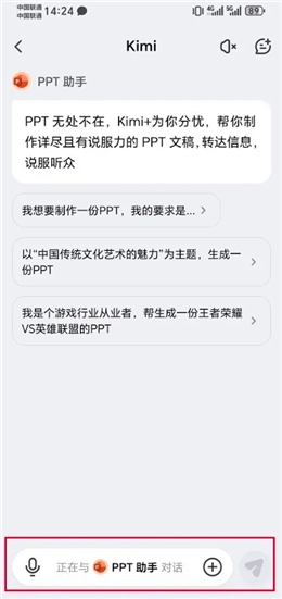 第一步,启动kimi智能助手,进入应用后,点击列表样式的图标。