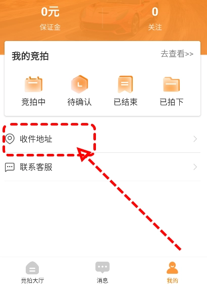 请先在当前页面完成软件安装,随后启动软件并进入个人中心界面,接着找到收件地址选项并点击进入该页面。