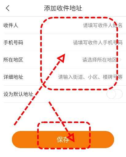然后按照提示框的指引,依次填写收件人、手机号码、地址等信息,完成后保存即可。