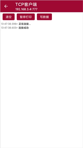 IP输入框与端口输入框用于填写目标IP地址,右侧按钮根据模式不同显示不同名称:在客户端模式下为“连接/断开”,在服务器模式下为“打开/关闭”,通过该按钮可控制连接的建立或终止;界面中部区域用于展示双方交互传输过的数据内容。