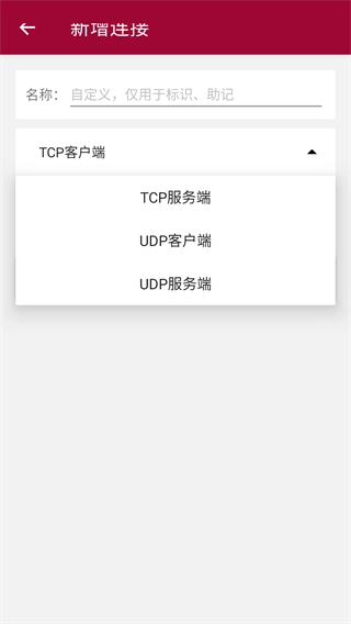 通讯测试的主界面设有三种通信模式的选择入口,分别对应TCP服务端、UDP客户端与UDP服务端,用户只需选定目标模式,即可进入相应的通讯测试功能模块开展操作。